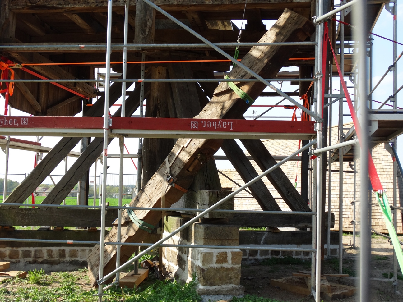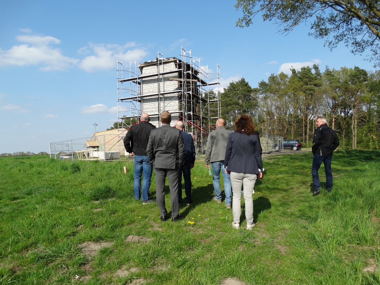 Die Landrätin des Kreises Minden-Lübbecke, der Bürgermeister der Stadt Petershagen und andere haben sich vor Ort über den Fortschritt an der Bockwindmühle informieren lassen.