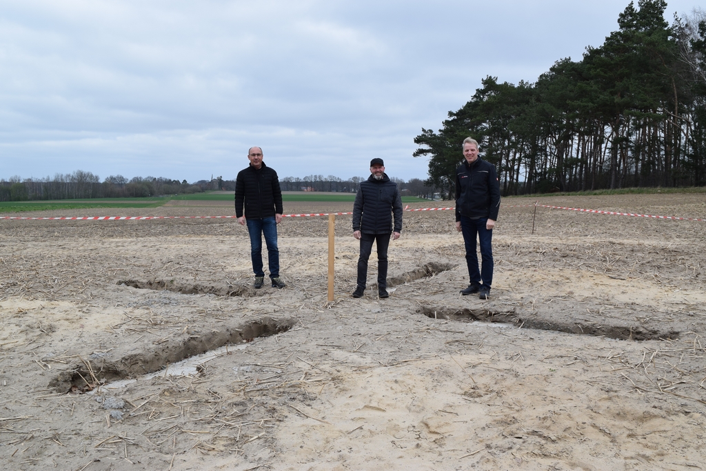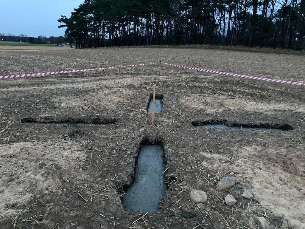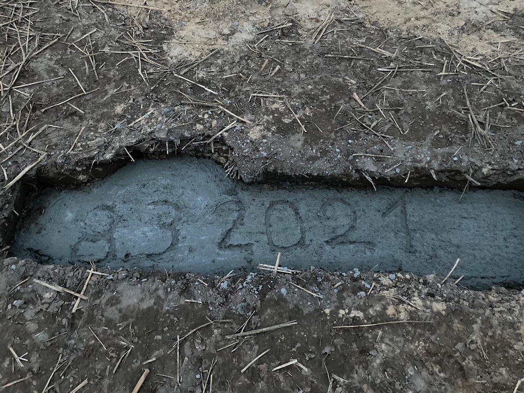 Das gegossene Fundament und die zuständigen Leute der Kulturgemeinschaft Neuenknick