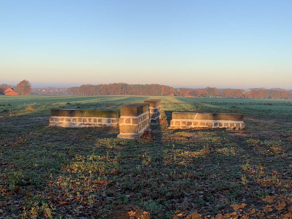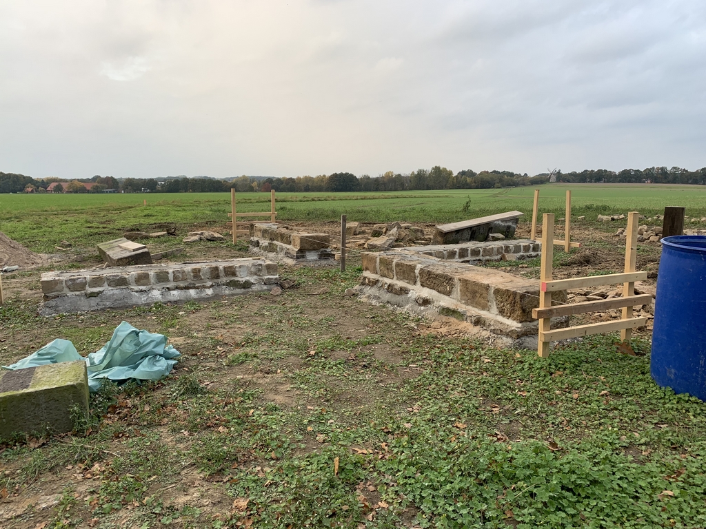 Die Sockel für den Kreuzbock der Bockwindmühle sind gemauert